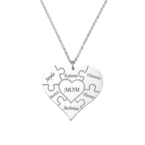 Colgante de acero inoxidable con forma de corazón de 18K, colgante personalizado con forma de corazón, puzzle, textura tallada, letras, 1 ~ 12