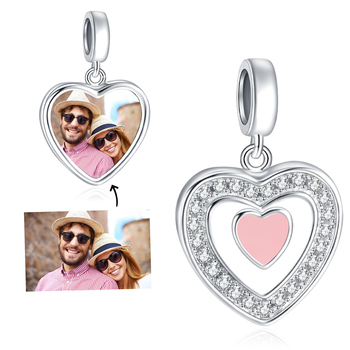 Venta al por mayor de alta calidad personalidad corazón personalizado foto encanto cuentas ajuste pulsera collar DIY pulsera cuentas para mamá regalos