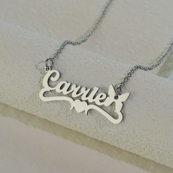 パーソナライズされたステンレス鋼パーソナルラブネームネックレスレディースファッション蝶ネームペンダントDIYアニバーサリーギフト