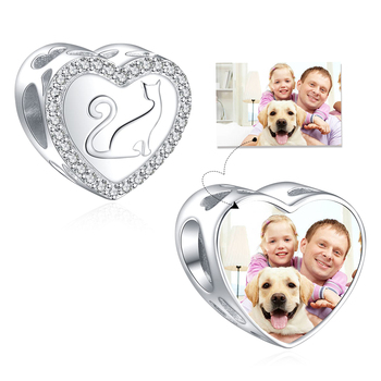卸売高品質パーソナリティハートカスタム写真チャームビーズフィットブレスレットネックレスDIYブレスレットビーズママギフト用