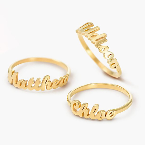 Anello con nome inglese personalizzato da uomo e da donna in acciaio inossidabile 18 carati placcato in oro 18 carati