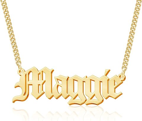 Collana con nome personalizzato, targhetta placcata in oro 18 carati regalo di gioielli personalizzati per donna con catena cubana