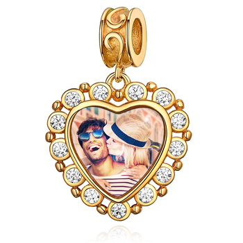 Commercio all'ingrosso di alta qualità con cuore personalizzato con ciondoli per foto e perline per bracciale con perline per mamma
