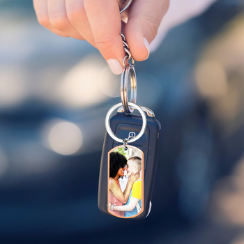 พวงกุญแจห้อยทรงสี่เหลี่ยมผืนผ้าแบบกำหนดเองรูปข้อความสแตนเลสอุปกรณ์โลหะสำหรับครอบครัว