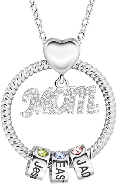 Handmadejewelry สร้อยคอแม่ลูกส่วนตัว,สร้อยคอสัญญากับ Birthstones จำลองจี้ชื่อลูกปัดกลมแบบกำหนดเอง