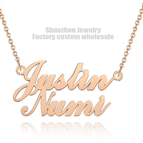 ฮิปฮอปร้อนขายที่กำหนดเองสองชั้นที่กำหนดเองชื่อสร้อยคอผู้ชายและผู้หญิงชื่อสแตนเลส18พันเครื่องประดับจี้