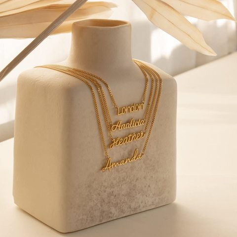 Shuozhen Vòng Cổ Tên Tùy Chỉnh Mặt Dây Chuyền Biển Tên Mạ Vàng 18K Cá Tính Quà Tặng Cho Nữ