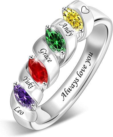 Tùy Chỉnh Nhẫn 1 Để 6 Sinh Đá, Gia Đình Mẹ Nhẫn, Tùy Chỉnh Khắc Tên Nhẫn Cho Phụ Nữ