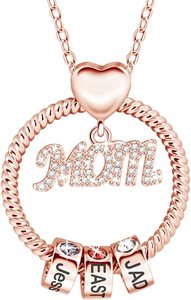 Trang Sức Thủ Công Vòng Cổ MẸ Hứa Hẹn Cá Nhân Với Đá Sinh Nhật Mô Phỏng, Mặt Dây Chuyền Tên Hạt Tròn Tùy Chỉnh
